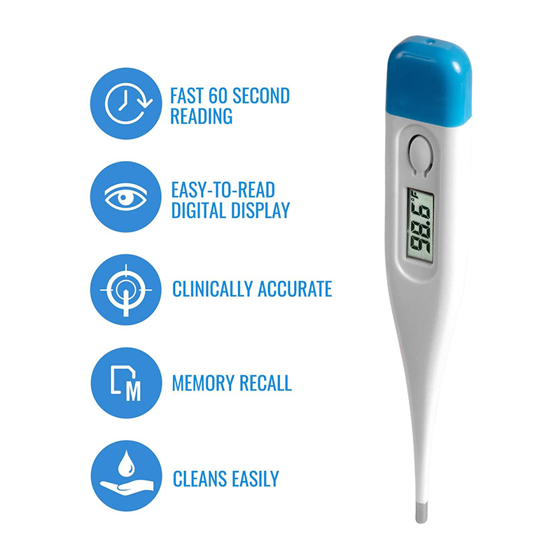 ΘΕΡΜΟΜΕΤΡΟ ΓΙΑ ΕΝΗΛΙΚΕΣ ΚΑΙ ΠΑΙΔΙΑ περιλαμβάνει 1 θερμόμετρο με βολική θήκη αποθήκευσης, μπαταρία (καλό για περίπου 3000 μετρήσεις).