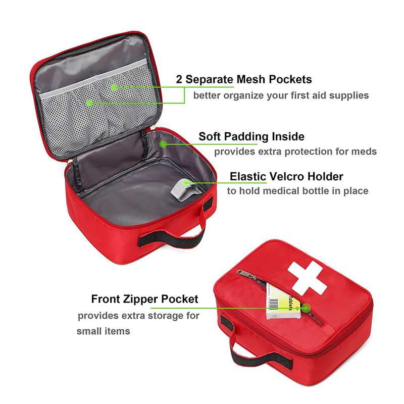 Διατηρεί όλα τα βασικά είδη πρώτων βοηθειών και ετοιμότητας και διατηρεί οργανωμένο το περιεχόμενο.