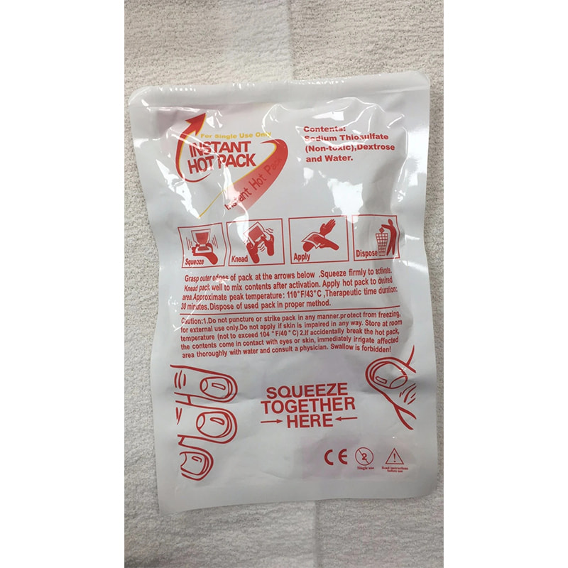 Χρησιμοποιώντας το instant hot pack, πρέπει να πιέσετε την εσωτερική σακούλα με τα χέρια σας για να κάνετε το πληρωτικό να αντιδράσει και να απελευθερώσει τη θερμότητά του.
