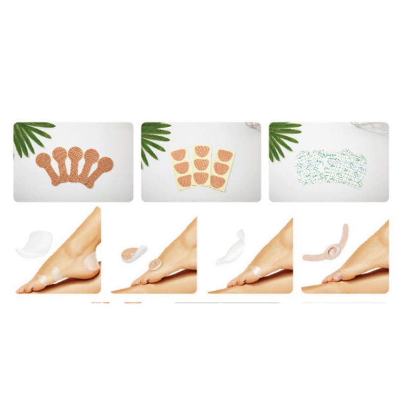 Χρησιμοποιείται για την ενόχληση που προκαλείται από τα παπούτσια που φορούν τα πόδια. Μπορεί να αποτρέψει τον τραυματισμό του ποδιού και να φορέσει παπούτσια για καλύτερη άνεση. Μπορεί επίσης να χρησιμοποιηθεί για το χέρι και τον καρπό ως βοηθητική πάστα στη ζωή και την εργασία για να προσφέρει στους χρήστες άνεση και άνεση. PE, αφρός, φανελέτα, PU και άλλα υλικά με χαμηλής ευαισθησίας ιατρική θερμοκολλητική κόλλα, κόλλα ακρυλικού οξέος, γέλη πυριτίου, υδροκολλοειδές κ.λπ. Μπορούν να προσαρμοστούν διάφορα σχήματα.