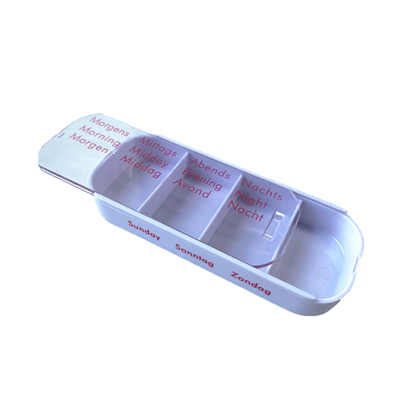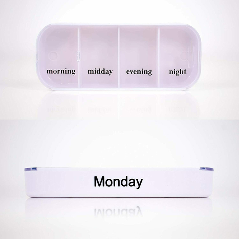 Κάθε δίσκος είναι αφιερωμένος για μία καθημερινή και έχει τέσσερις θήκες με ετικέτα πρωί, μεσημέρι, βράδυ και βράδυ.