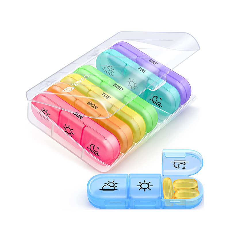 Αυτό το premium δοχείο χαπιών είναι εξοπλισμένο με υψηλής ποιότητας εξωτερικές θήκες ABS στερεάς κατάστασης και ημερήσιο κουτί για χάπια υψηλής ποιότητας PP για τρόφιμα.