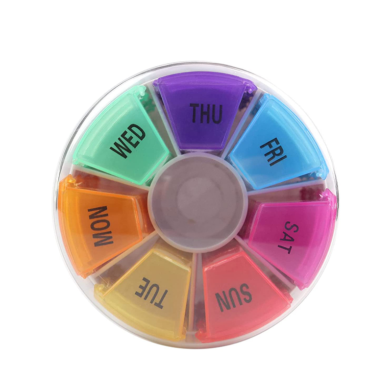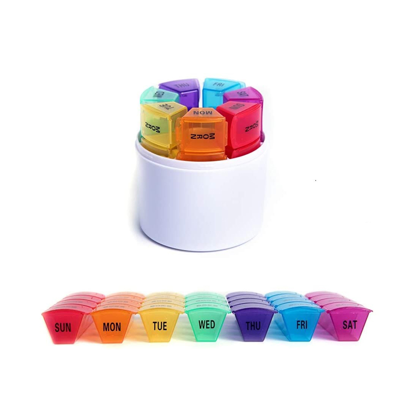 Κάθε συμπαγές κουτί φαρμάκου τυπώνεται με τα εικονίδια ημερομηνίας και ώρας της εβδομάδας και κάθε εβδομαδιαίο κουτί χαπιών μπορεί εύκολα να διακριθεί από 7 διαφορετικά χρώματα.