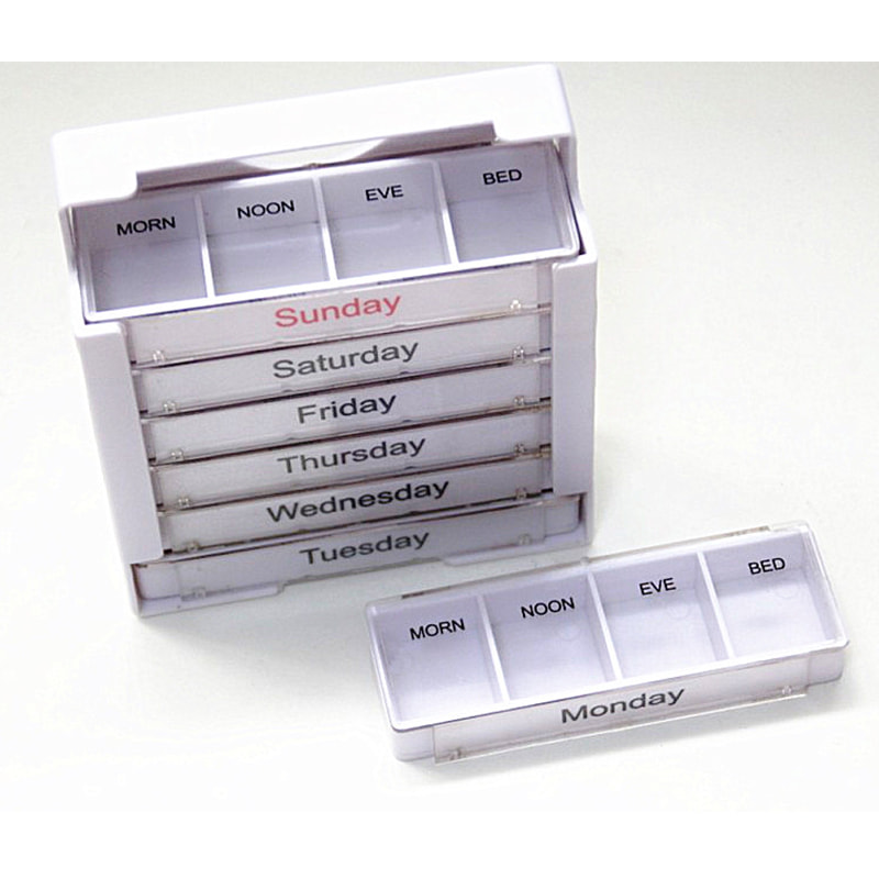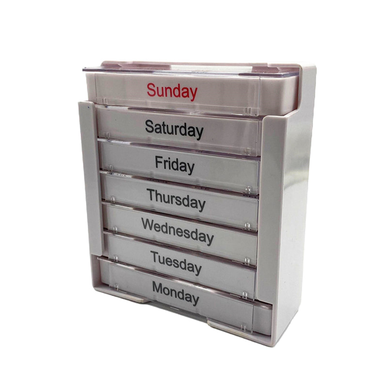 Κάθε δίσκος είναι αφιερωμένος για μία καθημερινή και έχει τέσσερις θήκες με ετικέτα πρωί, μεσημέρι, βράδυ και βράδυ.