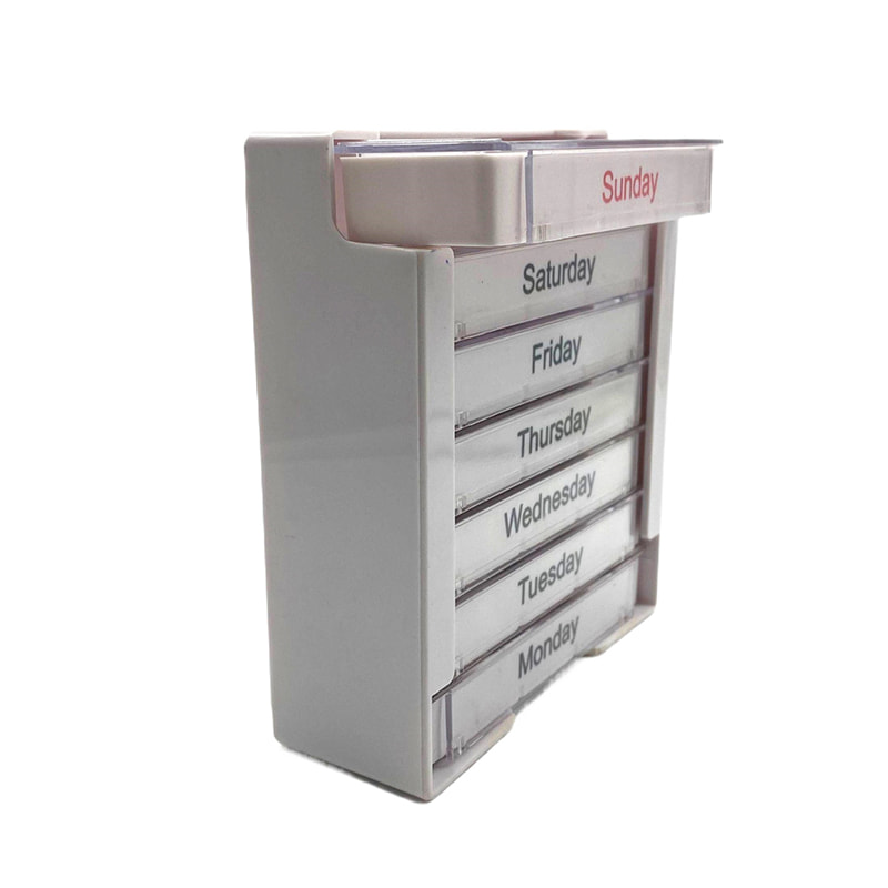 Η εξωτερική θήκη είναι σχεδιασμένη διαφανής και κάθε δίσκος έχει μοναδικό φωτεινό χρώμα ώστε ο χρήστης να ξεχωρίζει εύκολα τις ημέρες της εβδομάδας.