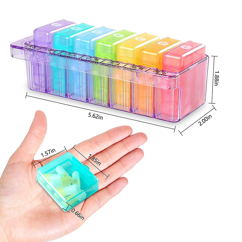 Το μέγεθος του καθημερινού κουτιού οργάνωσης χαπιών είναι τόσο μεγάλο όσο μια παλάμη, μπορεί να τοποθετηθεί εύκολα στην τσάντα ή στην τσέπη σας.