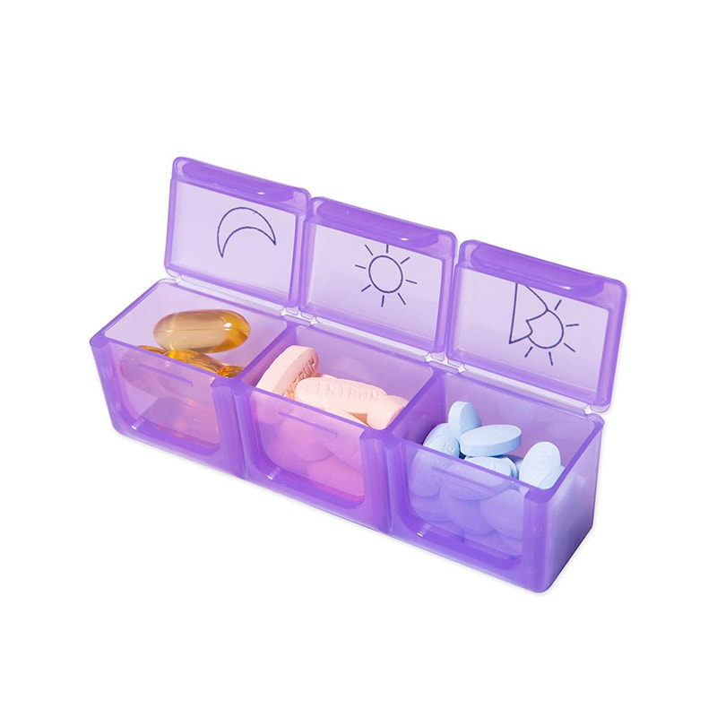 Κάθε ημερήσια θήκη χαπιών έχει χρωματική κωδικοποίηση και έχει σχεδιαστεί με 3 θήκες - πρωί, μεσημέρι, βράδυ.