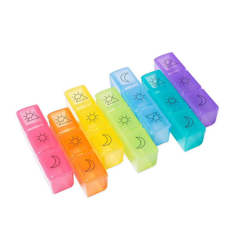 Το φωτεινό χρώμα του μεμονωμένου εσωτερικού κουτιού χαπιών αντιστοιχεί σε μία ημέρα της εβδομάδας