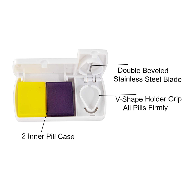 Αυτό το πολυλειτουργικό εργαλείο σάς επιτρέπει να χωρίζετε γρήγορα και καθαρά τα χάπια σε ένα διαμέρισμα και στη συνέχεια να τα αποθηκεύετε στα 2 κουτιά χαπιών που περιλαμβάνονται.