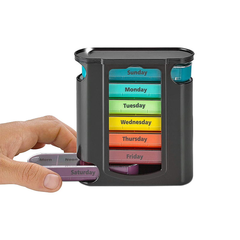 Η εξωτερική θήκη είναι σχεδιασμένη διαφανής και κάθε δίσκος έχει μοναδικό φωτεινό χρώμα ώστε ο χρήστης να ξεχωρίζει εύκολα τις ημέρες της εβδομάδας.
