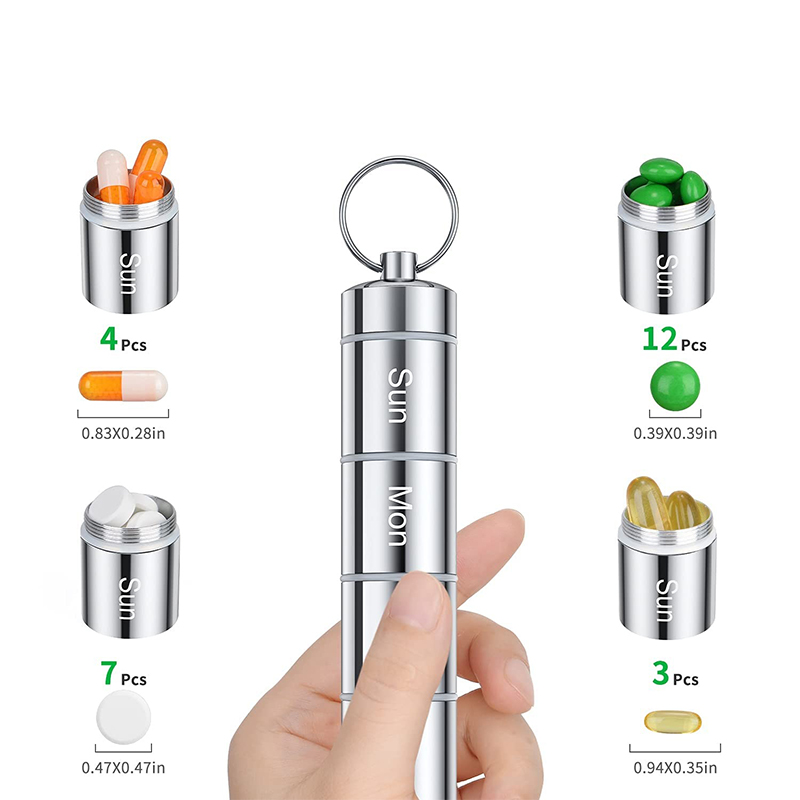 Κάθε εβδομαδιαία θήκη χαπιών έχει μπρελόκ και αγκράφα ορειβασίας για να μπορεί να κρεμαστεί στο μπρελόκ ή στην τσάντα, εύκολη μεταφορά, με σχέδιο στεγανοποιητικού δακτυλίου σιλικόνης, είναι ανθεκτικά στην υγρασία και αδιάβροχα