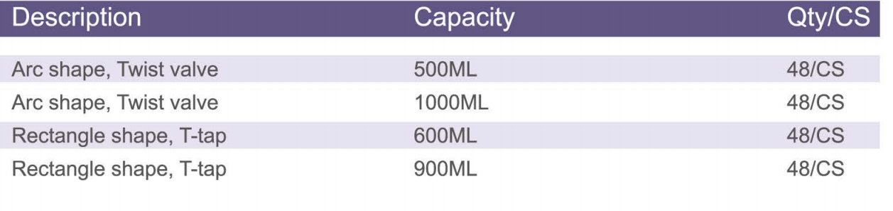 Χωρητικότητα διαθέσιμη σε 350ml,500ml,600ml,750ml,800ml,